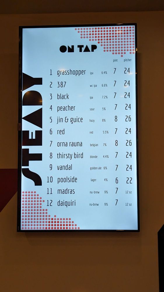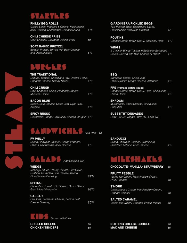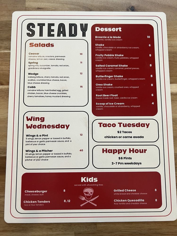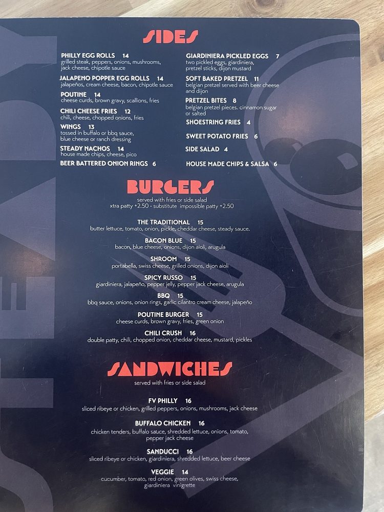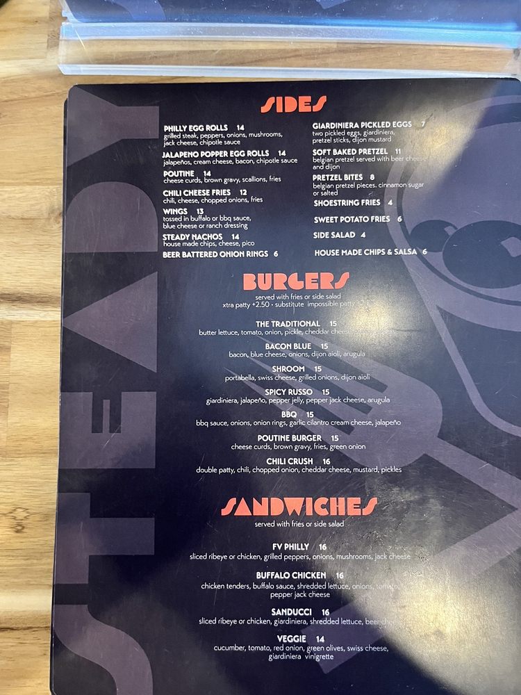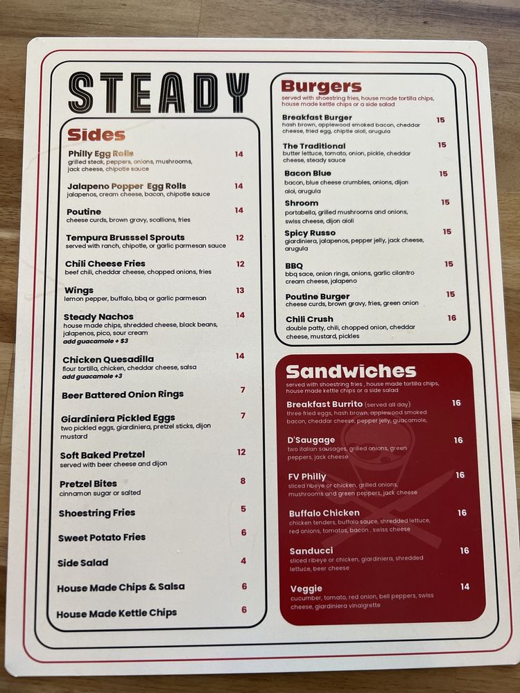 Steady Kitchen and Taps, a brewpub situated in Fountain Valley, CA, offers a diverse menu with mouth-watering sides, burgers, and sandwiches. From the indulgent Philly Egg Rolls and Jalapeno Popper Egg Rolls to savory options like the FV Philly sandwich and BBQ Burger, there is something for everyone. The restaurant prides itself on providing a comfortable dining experience, offering delivery, takeout, and wheelchair accessibility. With a range of happy hour specials, beer and wine offerings, and heated outdoor seating, Steady Kitchen and Taps is a go-to spot for delicious food and a great atmosphere. Whether you're in the mood for classic comfort food or seeking out unique flavors, this woman-owned establishment has it all.